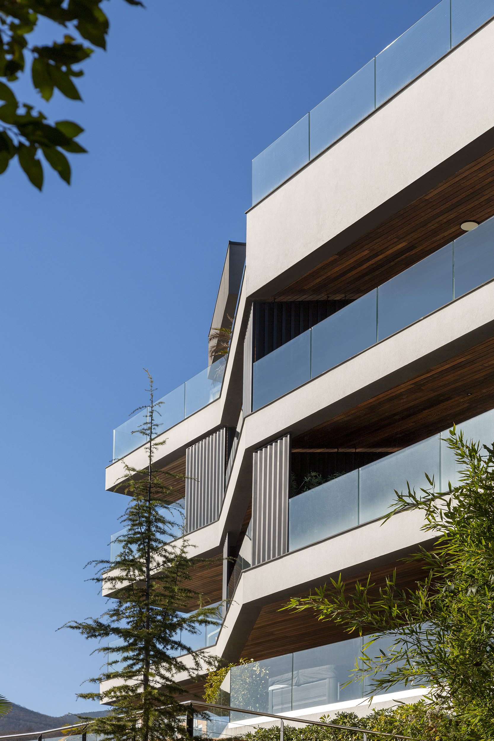 Kolni pristup sa sjeverne strane,gusto zelenilo i vizure na zaljev s južne strane odredili su usmjerenje i tlocrtni koncept kako stanova pojedinačno tako i same građevine.
