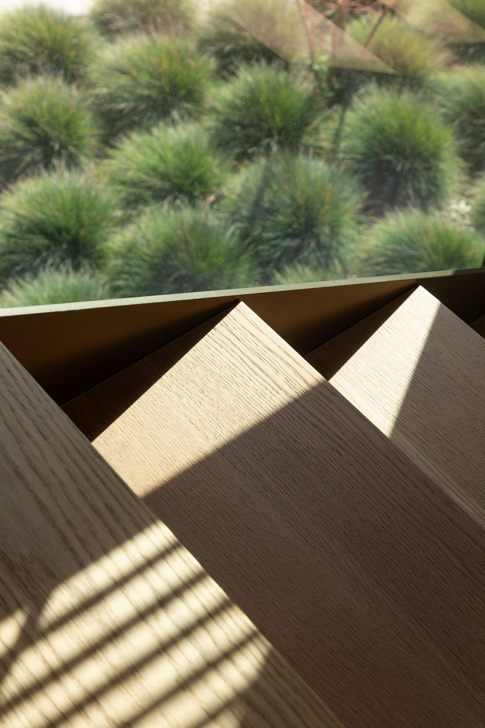 Prirodni materijali korišteni u interijeru su tonski prigušeniji u prostorijama za odmor,a intenzivniji u dnevnim prostorima.
